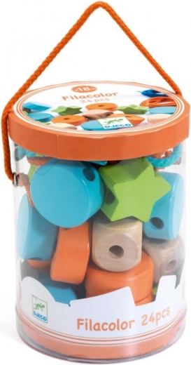Kreatives Spielzeug von DJECO für kleine Hände und große Fantasie. Dieses hölzerne Set von Fädelformen ist ideal zur Förderung der Feinmotorik und Geschicklichkeit. Es bietet bunte Farben und verschiedene Formen, die kreatives Denken anregen und eine großartige Möglichkeit bieten, Kinder mit Farb- und Geometriekonzepten vertraut zu machen.