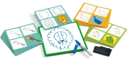 Dieses originelle Set der Marke Djeco ermöglicht es Kindern, Tiere anhand einfacher Schritt-für-Schritt-Anleitungen zu zeichnen. Das Set enthält Karten mit anschaulichen Diagrammen, die die Kinder beim richtigen Zeichnen anleiten. So können die Kinder ihren eigenen gezeichneten Zoo erstellen.
