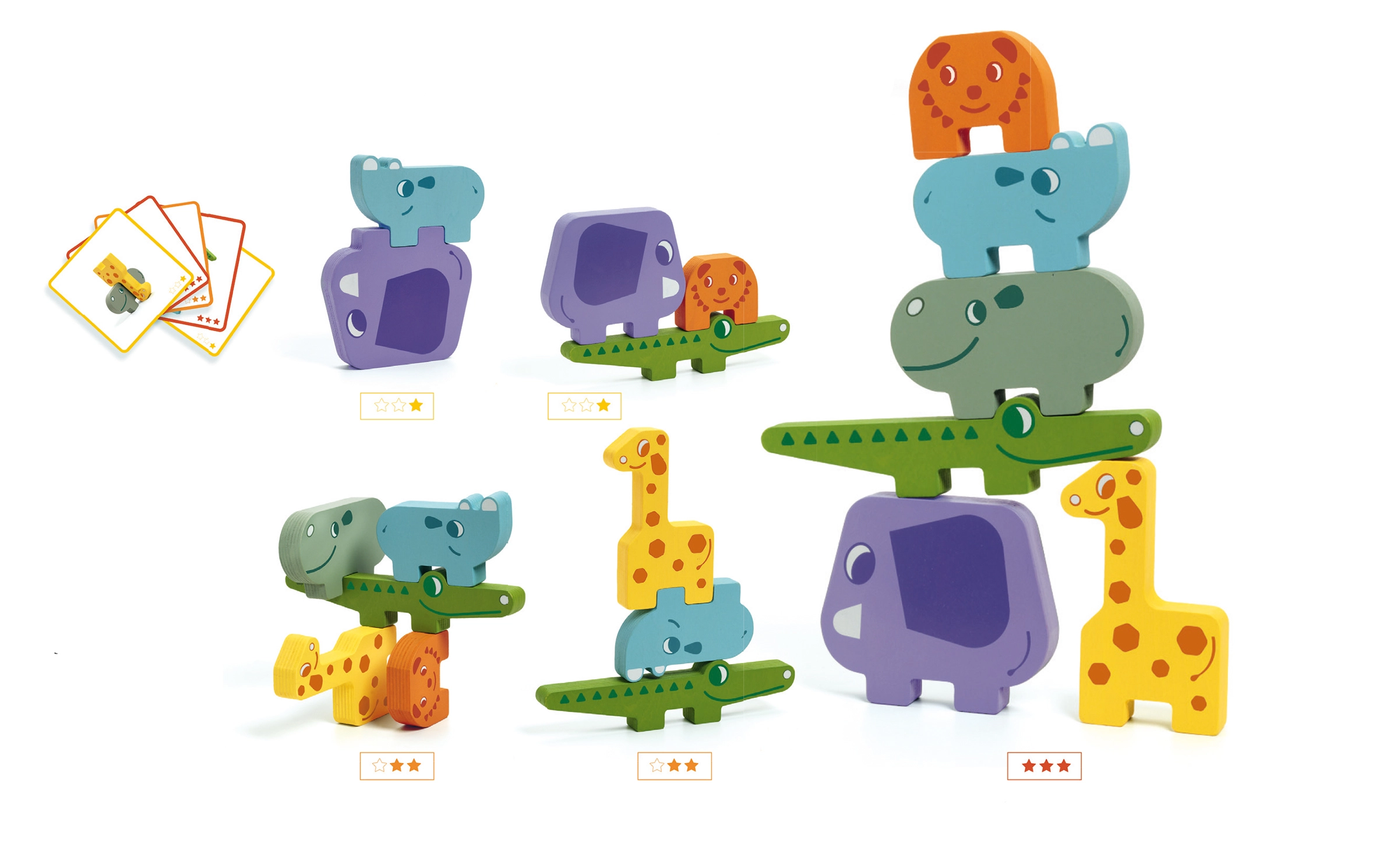 Spielen Sie mit Tieren aus dem Zoo und beschenken Sie Ihre Kinder mit kreativen Puzzlesteinen der Marke DJECO. Diese Steine bieten: