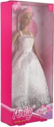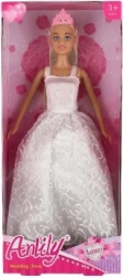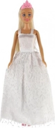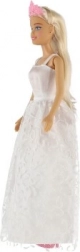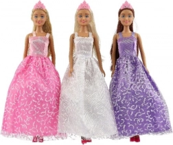 Detailreiches Ball- bzw. Brautkleid mit feinen Mustern und Krone verleiht der Puppe einen märchenhaften Look.
