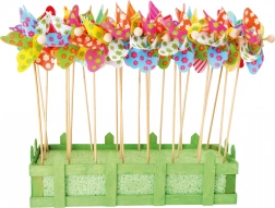 Das hölzerne SMALL FOOT Windrad für Kinder ist die ideale Dekoration für Haus und Garten. Die farbenfrohen Flügel drehen sich schon bei leichtem Wind und begeistern Kinder mit Licht- und Farbspeielen. Dank des robusten Holzstäbchens lässt es sich mühelos in die Erde im Blumenkasten oder direkt ins Beet stecken.