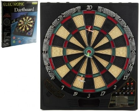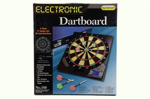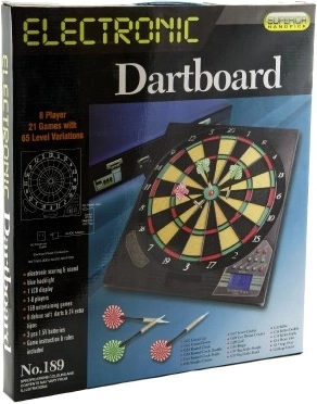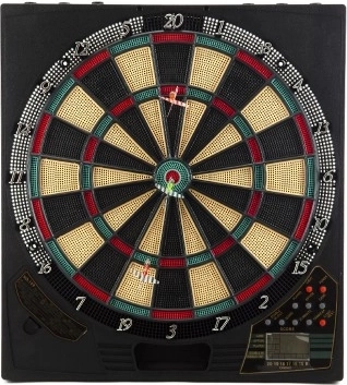 Sie werden auch die akustische Trefferbestätigung schätzen, Spielmöglichkeiten für bis zu 8 Spieler, die praktische automatische Abschaltung nach 30 Minuten Inaktivität und die einfache Tastenbedienung (GAME, OPTION, PLAYER, HANDICAP, LIGHT, SOUND, START/NEXT). Im Lieferumfang sind 6 Pfeile enthalten. Für die korrekte Installation hängen Sie die Scheibe in 1,73 m Höhe auf und werfen Sie aus einer Entfernung von 2,37 m.