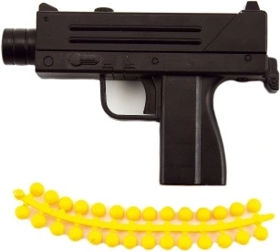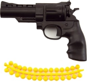 Die Pistole verwendet weiche Kugeln für eine sichere Nutzung, ideal für Kinder.