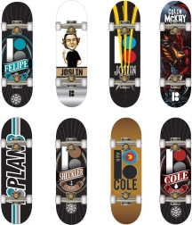 Jedes der sechs Fingerboards hat ein einzigartiges Design, das Sie mit stilvollen Grafiken begeistern wird.