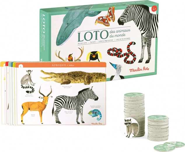 Mit dem Tierlotto-Spiel von Moulin Roty tauchen Kinder in eine Welt voller Tiere ein. Jede Karte enthält wunderschöne Illustrationen und die Kinder können nicht nur das Erkennen von Tieren üben, sondern auch ihre feinmotorischen Fähigkeiten entwickeln.