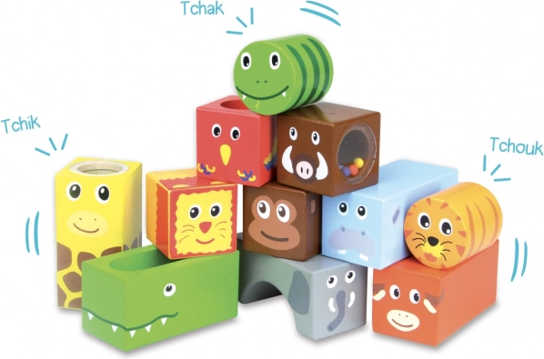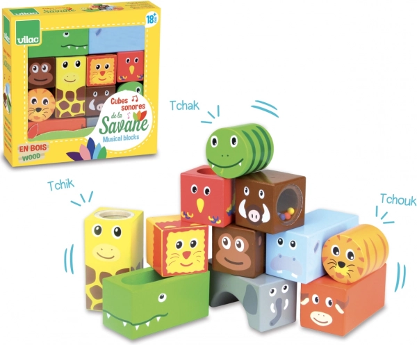 Die Holz-Klangbausteine Savanne von VILAC sind die ideale Wahl für erste Entdeckungen. Jeder Baustein verbirgt ein anderes Geräusch oder einen Effekt und liegt dank des robusten Holzes gut in kleinen Kinderhänden. Das Spiel unterstützt auf natürliche Weise die Entwicklung der Sinne und die Kreativität.