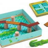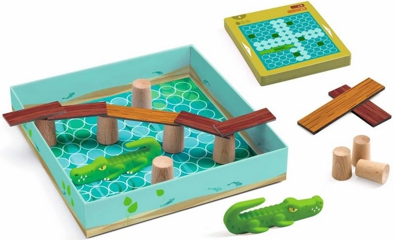 Baut eine Brücke und erreicht das markierte Ufer, ohne zwischen die hungrigen Krokodile zu fallen! Dieses clevere Logikspiel bringt Schritt für Schritt anspruchsvollere Herausforderungen und regt strategisches Denken sowie räumliche Vorstellungskraft an. Jede Aufgabenkarte hat nur eine richtige Lösung, sodass ihr prüfen könnt, ob ihr wirklich den idealen Weg gewählt habt.