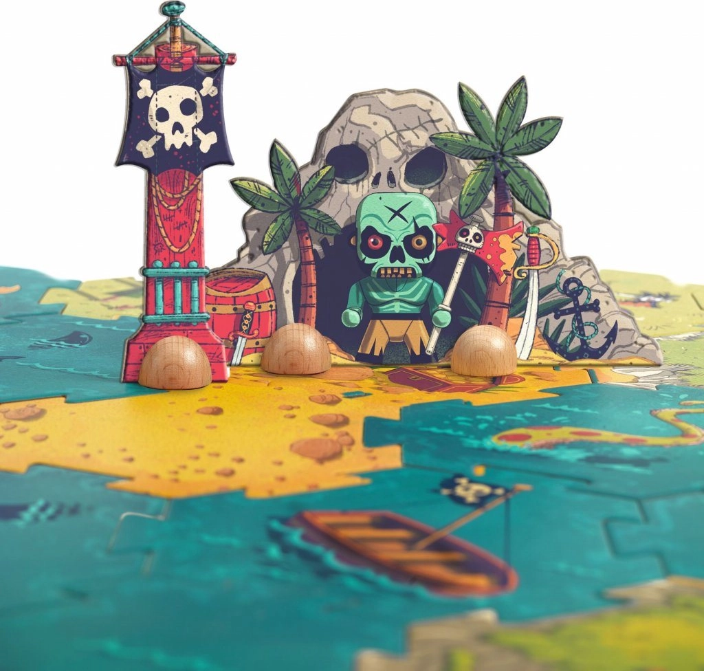 Dieses originelle Set verbindet Puzzlefreude mit kreativem Spiel. 26 große sechseckige Teile ermöglichen eine weitläufige Szene, während 4 vertikale Kulissen auf Holzsockeln dem ganzen Schlachtfeld einen räumlichen Effekt verleihen. Die Teile bestehen aus sehr festem Karton mit FSC®-Zertifizierung und halten auch häufigem Spielen stand.