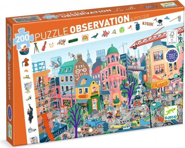 Entdecken Sie die Magie des Stadtlebens mit diesem wunderschön illustrierten Suchpuzzle Stadt von DJECO mit über 200 Teilen. Ideales Spielzeug für Kinder, das ihre Beobachtungsfähigkeiten und Fantasie verbessert.