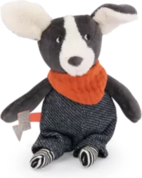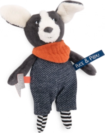 Niedlicher und bunter kleiner Hund von der Marke Moulin Roty aus der Puce & Pilou Kollektion. Ideales Kuscheltier für Kinderspiele und zum Kuscheln.