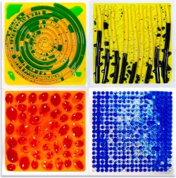 Dieses Set enthält 4 quadratische Unterlagen mit den Maßen 30x30 cm, die ideal für die Unterstützung der sensorischen Wahrnehmung bei Kindern sind.
