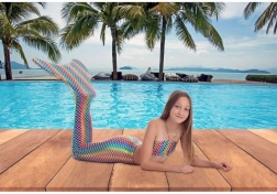 Unsere Meerjungfrauenflosse in Kombination mit dem Bikini Hawai ist ideal für kleine Schwimmer, die wie echte Meerjungfrauen spielen möchten. Dieses Set ist perfekt für den Spaß am Pool oder Meer und bringt viel Freude beim Schwimmen.