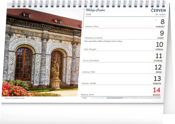 Entdecken Sie die Schönheit Prags auf den Fotografien des Tischkalenders für das Jahr 2026 von der Marke Ich liebe Prag. Dieser Kalender bietet atemberaubende Aufnahmen der Hauptstadt und einen praktischen tschechischen Kalender, der Namen, Feiertage, Mondphasen und eine erweiterte Namensliste umfasst.