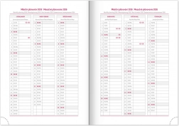 Der Kalender enthält auch nützliche Details wie Feiertage in der Tschechischen und Slowakischen Republik sowie internationale Feiertage, erweiterte Namenslisten, eine Karte der Tschechischen und Slowakischen Republik und perforierte Ecken. Für eine bessere Organisation Ihrer Notizen fehlt auch nicht das Textillesezeichen und Platz für persönliche Daten.