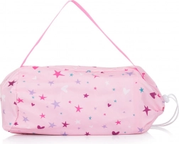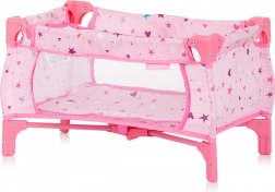 Praktisches Puppenbettchen, das auf eine kleine Größe zusammengefaltet werden kann. Die Maße des Bettchens sind 56 x 32 x 33 cm.
