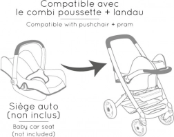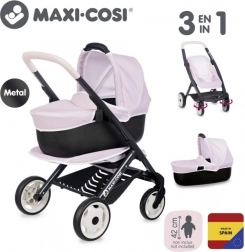 Entdecken Sie die Magie des fantasievollen Spiels mit diesem stilvollen Maxi-Cosi-Puppenwagen in hellrosa Farbe. Der Wagen bietet einen abnehmbaren Korb und die Möglichkeit, ihn als Kombiwagen zu verwenden, was kleinen Pflegern ein flexibles und unterhaltsames Erlebnis bietet.