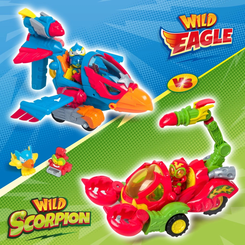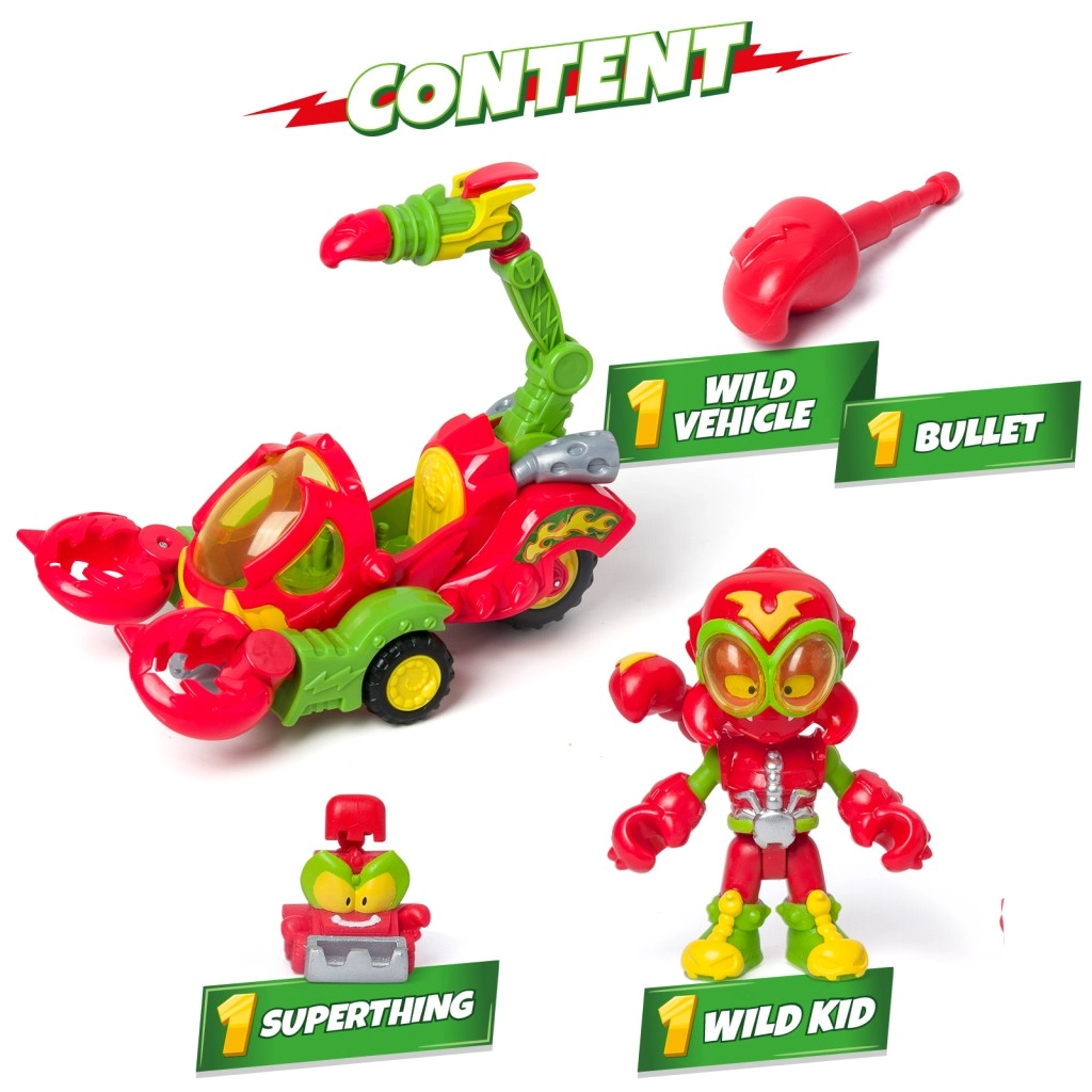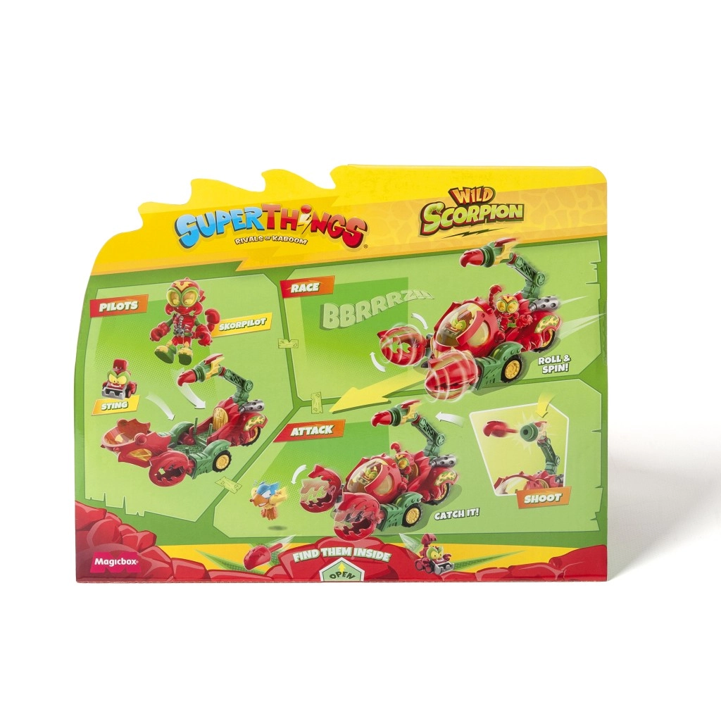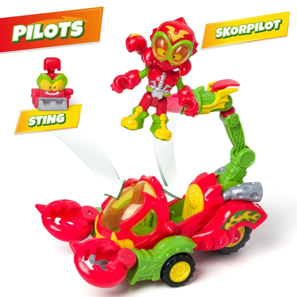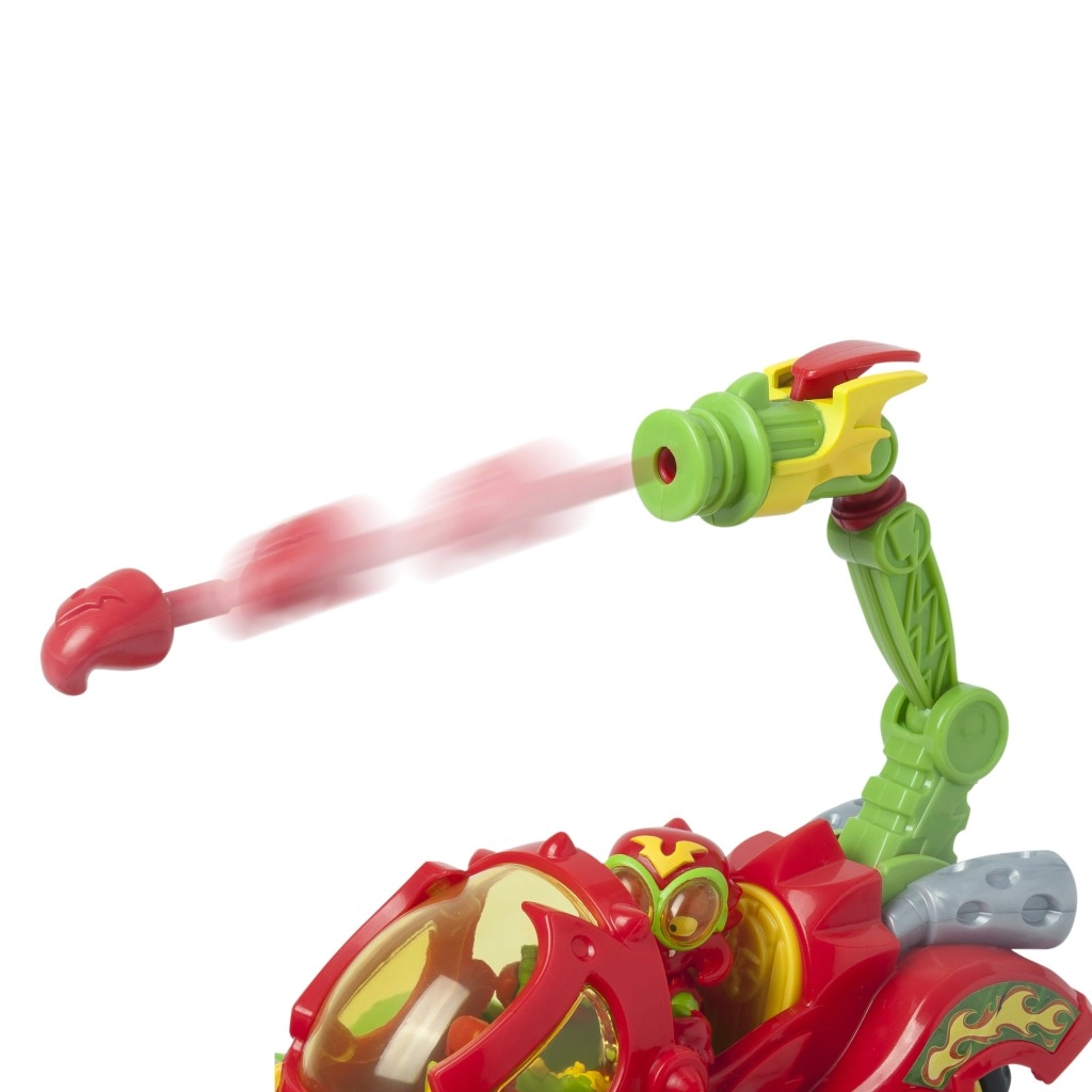 Entfesseln Sie die volle Kraft des Skorpions mit einem exklusiven Kind und einem SuperThing, die beide am Steuer Platz nehmen können. Der Skorpion besitzt Klauen, die Gegner fangen können, und dreht sich beim Bewegen. Außerdem können Sie Helden mit seinem mächtigen Stachel abschießen.