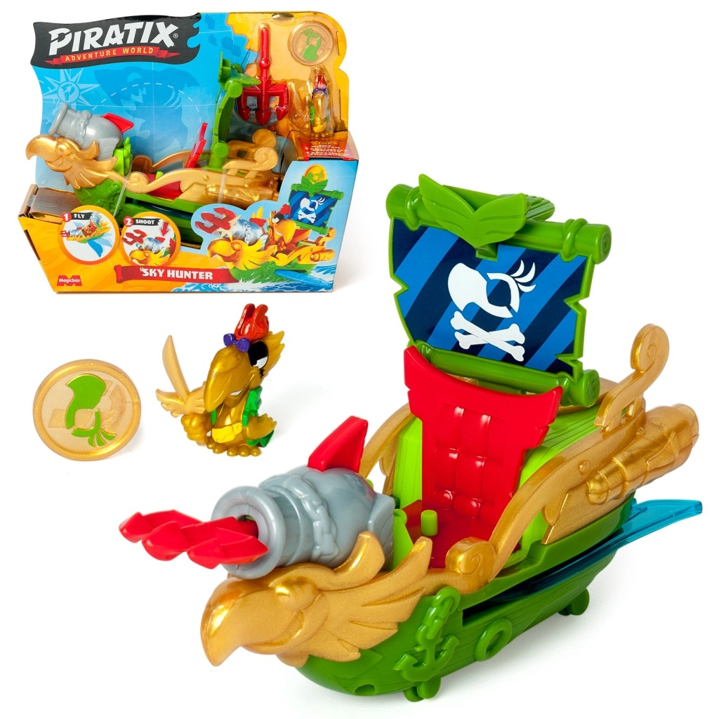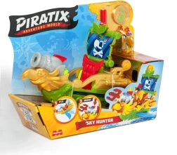 Begib dich auf eine spannende Piratenexpedition mit der Piratix Abenteuerwelt Sky Hunter. Dieses farbenfrohe Spielset ermöglicht es dir, in eine Welt fantastischer Seeabenteuer mit fliegenden und schießenden Elementen einzutauchen.