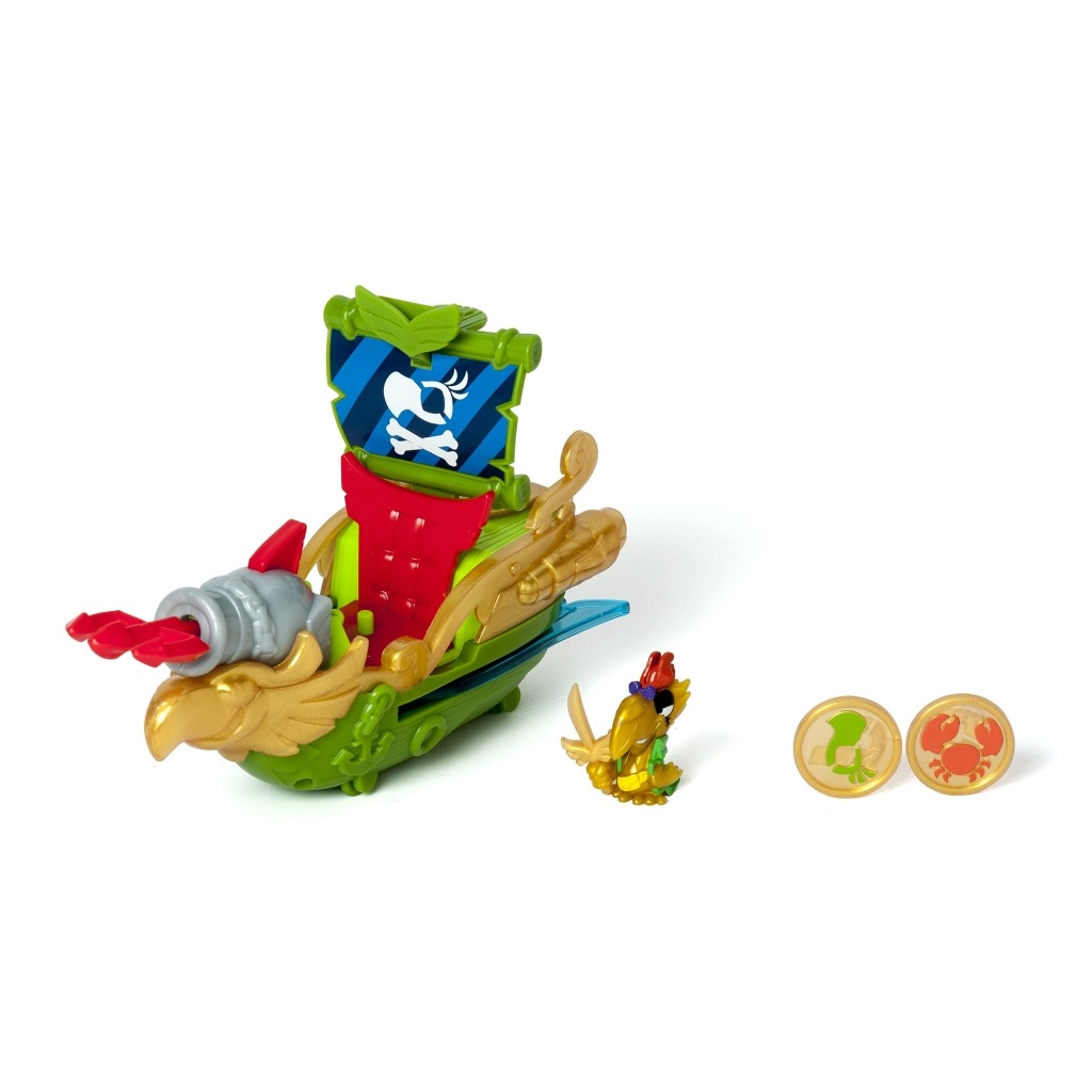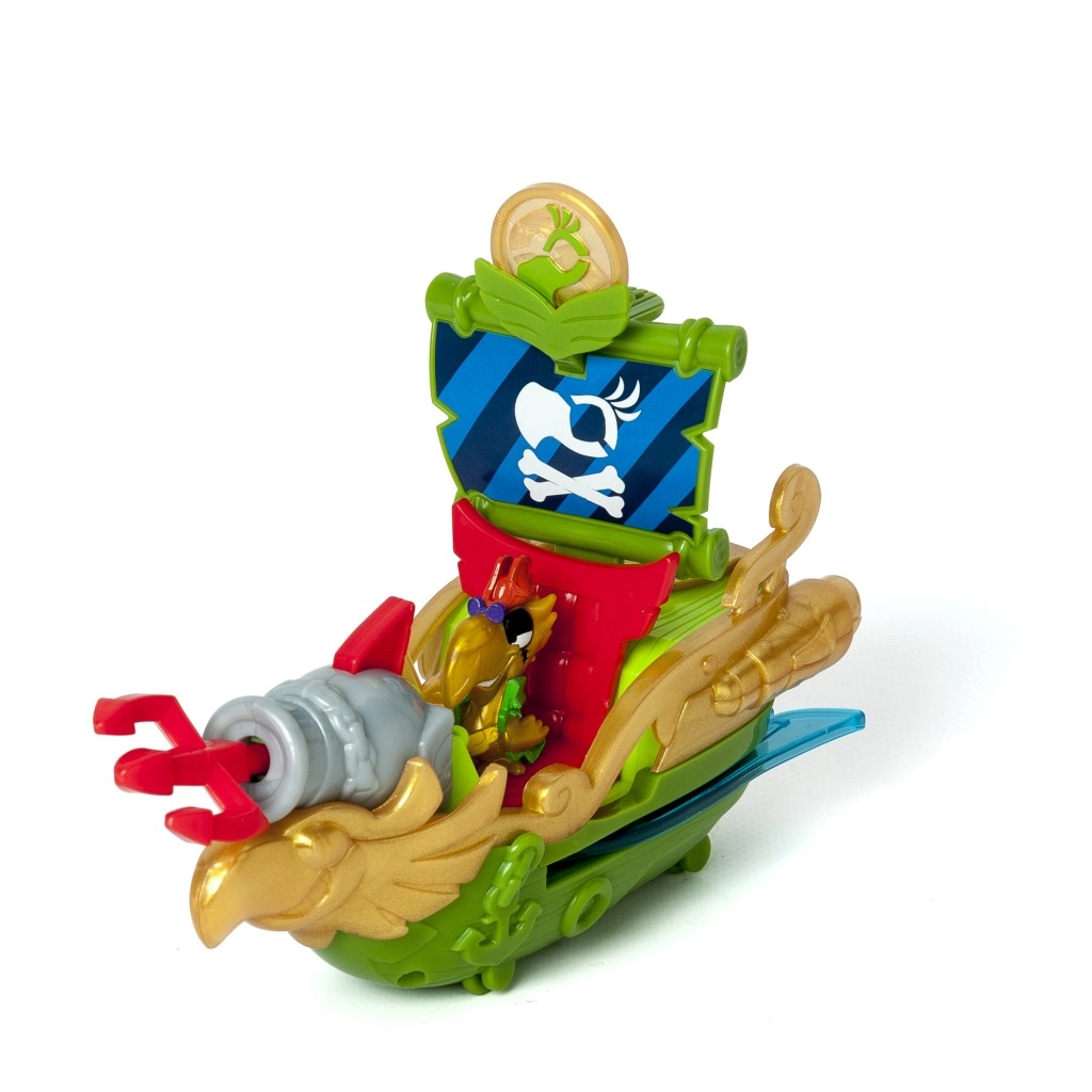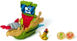 Die Kombination aus Grün, Gold und Rot bringt ein lebhaftes Piratenspiel mit sich. Ein Kanonenschussmechanismus ist ebenfalls enthalten.