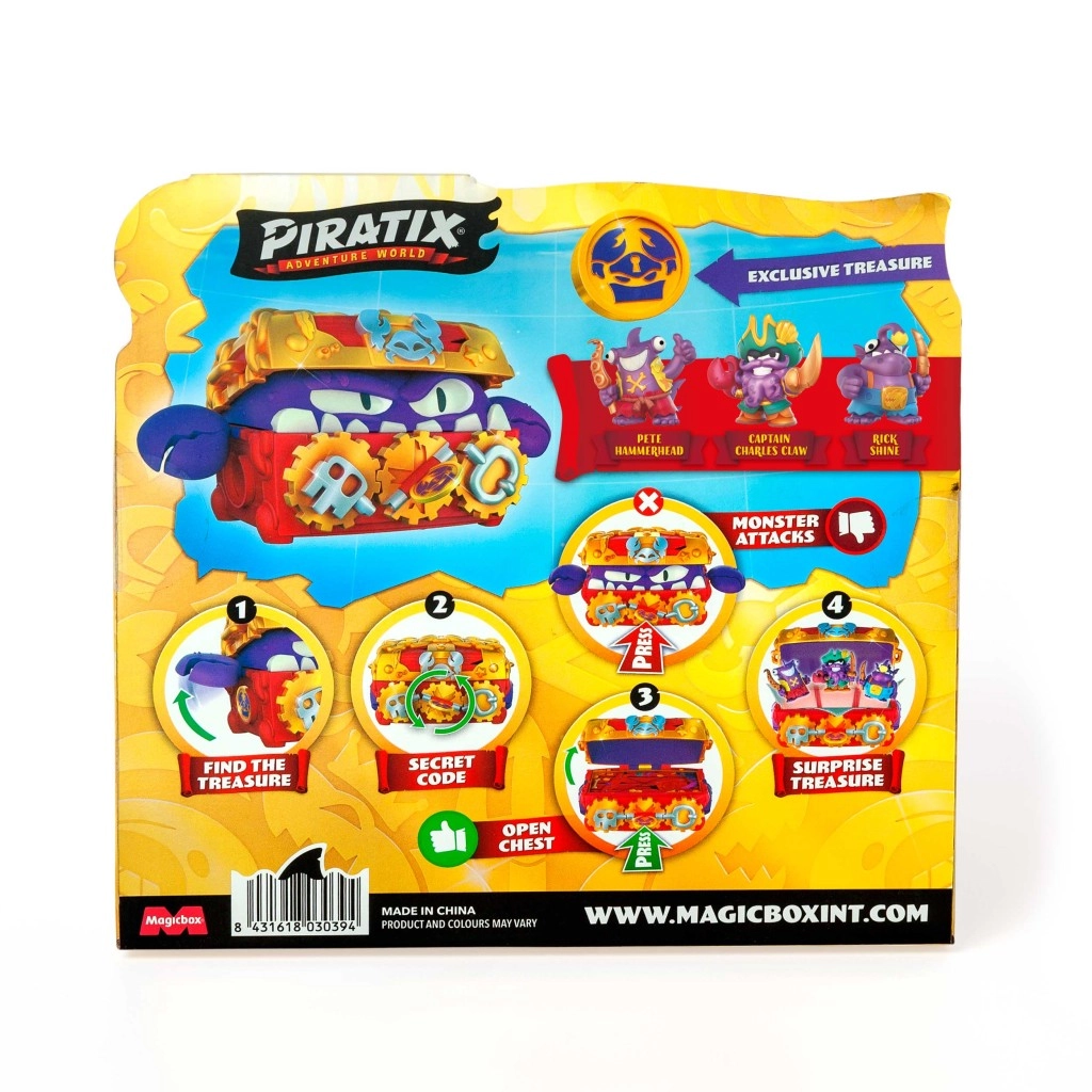 Entdecken Sie die Geheimnisse des Monster-Schatzes mit diesem einzigartigen Piratix-Set. Stellen Sie sich der Herausforderung und lösen Sie die Rätsel der Truhe, um die verfluchte Besatzung zu befreien und ihren Schatz zu erlangen.