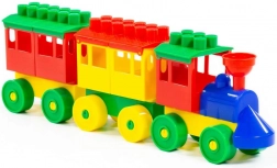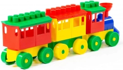 Bunte Plastikzug-Set ist ideal für kleine Kinder ab 3 Jahren. Das Set enthält eine Lokomotive und zwei Waggons, was den Kindern ermöglicht, Kreativität und Feinmotorik zu entwickeln.