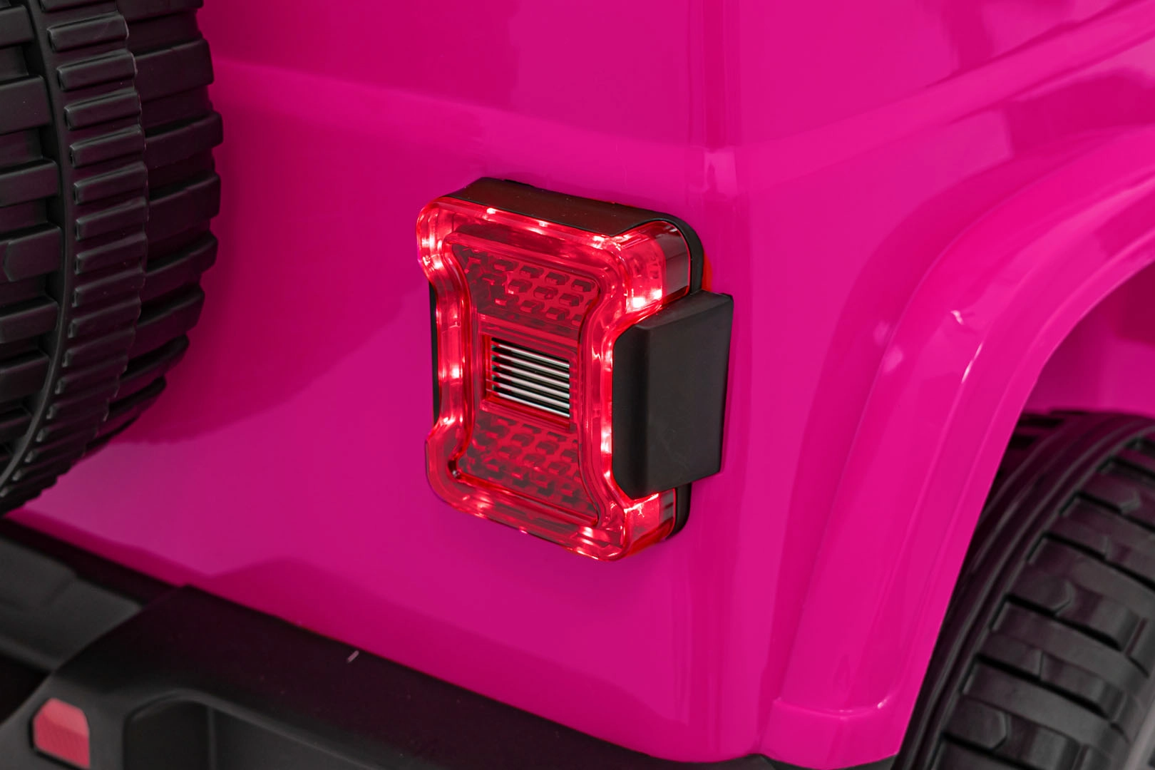 Das pinke elektrische Auto Jeep Wrangler Rubicon ist die perfekte Wahl für kleine Fahrerinnen und Fahrer, die Abenteuer lieben. Dank des Antriebs 4×45 W und des sanften Anfahrens bietet es eine komfortable und sichere Fahrt vorwärts und rückwärts – zur Freude von Kindern und Eltern. EVA-Schaumräder mit grobem Profil und hintere Stoßdämpfer sorgen für Stabilität auf verschiedenen Untergründen, während LED-Lichter vorne und am Dachbogen einen realistischen Offroad-Look verleihen.