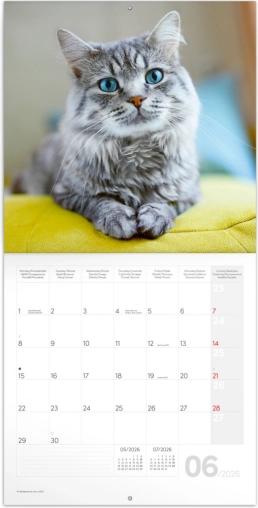 Katzenkalender 2026 mit Platz für Notizen, Mondphasen und Feiertagen. Ideal für Katzenliebhaber.