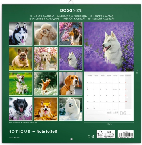 Genießen Sie jeden Monat mit diesem Kalender für das Jahr 2026 wunderschöne Bilder von Hunden. Der Kalender umfasst: