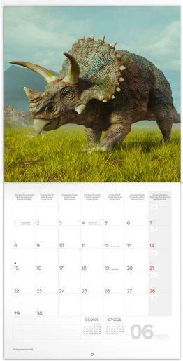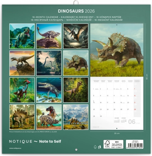 Notizkalender Dinosaurier 2026 bietet beeindruckende Illustrationen von prähistorischen Dinosauriern, ergänzt durch ein praktisches sechs-sprachiges Kalendarium, das Ihre tägliche Planung und Notizen erleichtert.