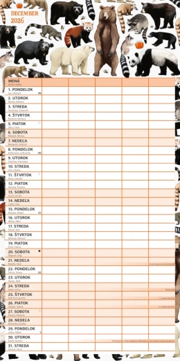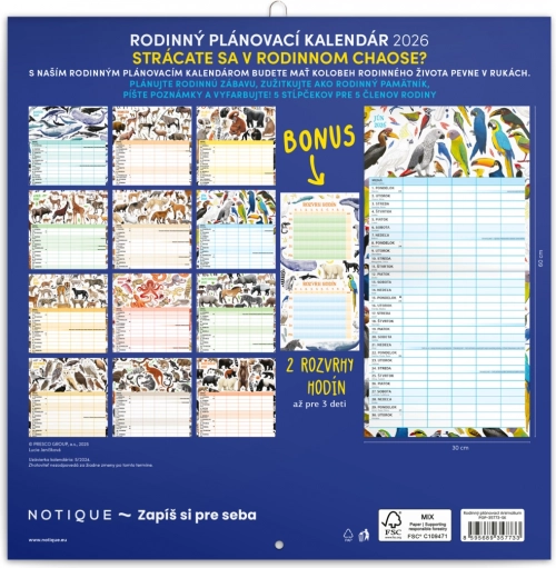 Dieser einzigartige Kalender ist so konzipiert, dass er die Planung der gesamten Familie erleichtert. Schöne Tierillustrationen verleihen jeder Seite visuelle Magie und helfen, eine angenehme Umgebung für die Familienplanung zu schaffen.