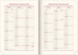 Der Kalender enthält einen Tagesplan mit einem tschechisch-slowakischen Kalender und ergänzenden Sprachen, darunter Englisch, Deutsch, Ungarisch und Russisch.
