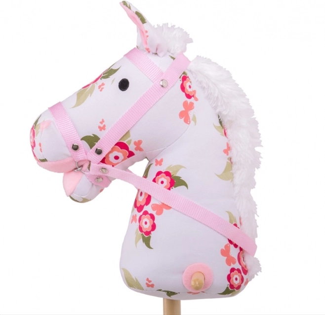 Das Pferdchen ist mit einer flauschigen Mähne und einem Blumenmuster ausgestattet, was zu seiner Niedlichkeit und visuellen Anziehungskraft beiträgt.