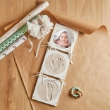 Platz für zwei Abdrücke und ein Foto des Babys – Möglichkeit, sowohl Hände als auch Füße festzuhalten.
