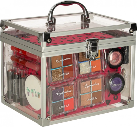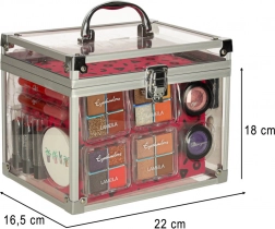 Dieser erstaunliche XXL Kosmetik-Koffer enthält alles, was ein Kind braucht, um einen eigenen Heim-Schönheitssalon zu gestalten. Drinnen finden Sie Lippenstifte, Lidschatten, Lipgloss, Rouge und sogar ein Set zur Nagelgestaltung. Alles ist sorgfältig in einem praktischen, transparenten Koffer mit einem bequemen Griff verstaut.