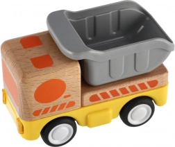 Robuster Holzspielzeug-Lkw mit Schwungrad, der jeden kleinen Fahrer begeistert! Der Schwungradantrieb ermöglicht ein einfaches Anschieben des Spielzeugautos, das dann von selbst vorwärts fährt. Ideal für kleine Kinderhände.