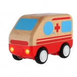 Der Holzkrankenwagen bringt kleinen Kindern viel Freude und fördert ihre motorischen Fähigkeiten. Dank des Schwungrads ist das Spielzeug selbst für die kleinsten Hände einfach zu bedienen. Herausstechend ist die hochwertige Holzverarbeitung, wodurch er auch anspruchsvollen Spielen standhält.