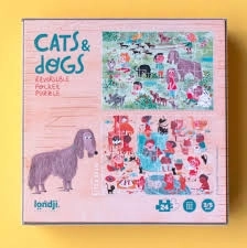 Das Puzzle Katzen und Hunde der Marke Londji bietet wunderschön illustrierte Darstellungen von Tierfreunden und ihren Besitzern in verschiedenen lustigen Situationen. Dieses doppelseitige Puzzle enthält 24 Teile, die leicht zusammengesetzt werden können und den Kindern stundenlangen Spaß bieten.