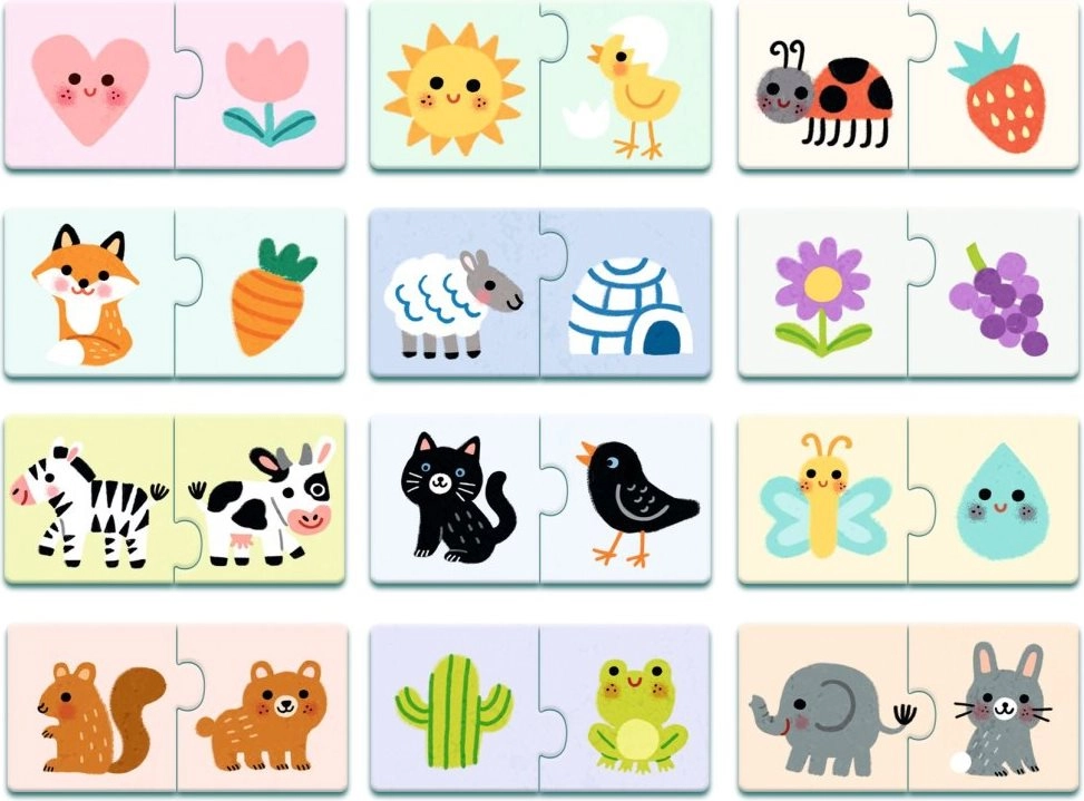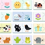 Farben spielerisch entdecken – jedes Puzzle-Paar verbindet einen Gegenstand mit der passenden Farbe. Beim Zusammensetzen erweitern Kinder intuitiv ihren Wortschatz, trainieren die Feinmotorik und das visuelle Wahrnehmungsvermögen. Das Set ist für kleine Hände gestaltet: starke Kartonteile lassen sich leicht greifen und gut halten.