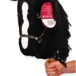 Der schwarze Plüschkopf mit Mähne, weißer Blesse und dekorativem Zaumzeug verleiht dem Pferd einen authentischen Look, der Kinder sofort ins Spiel hineinzieht.