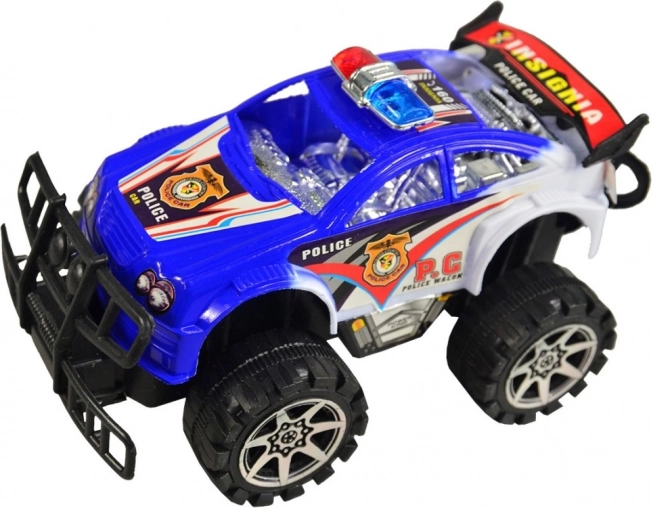 Polizeigeländewagen für Kinder ab 3 Jahren, erhältlich in zwei Farbvarianten. Kunststoffmaterial mit großen Rädern.