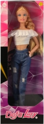Entdecken Sie die stilvolle Puppe Lucy, die ein unverzichtbares Accessoire für Ihre Sammlung ist. Gekleidet in einem modernen Jeans-Outfit.