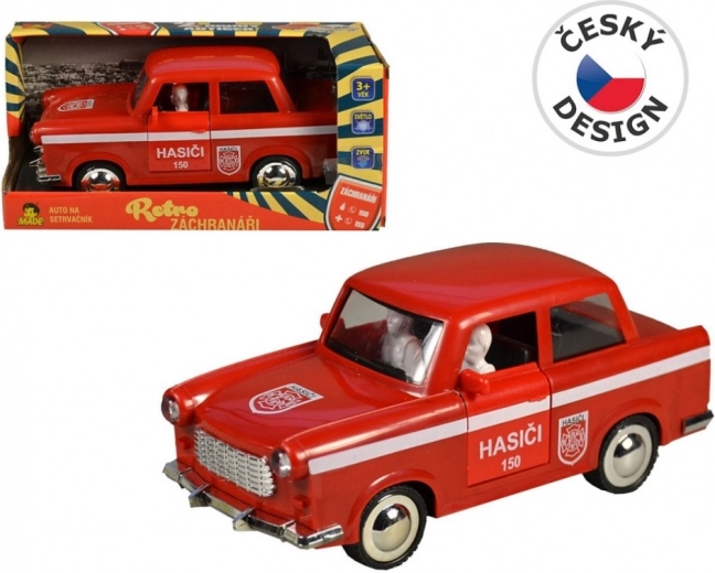 Retro Feuerwehrwagen ist die perfekte Ergänzung für jede Sammlung. Mit Antrieb durch Schwungrad, einem roten Design und Motorgeräuscheffekten sorgt er für jede Menge Spaß.