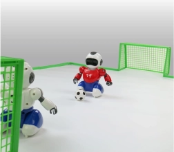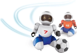 Erleben Sie die Aufregung eines Fußballspiels mit dem Roboterfußball, bei dem zwei Roboter um das Führen des Balls ins gegnerische Tor konkurrieren. Jeder Roboter wird mit einer separaten Fernsteuerung gesteuert, was maximale Kontrolle über deren Bewegungen und Aktionen garantiert.