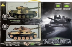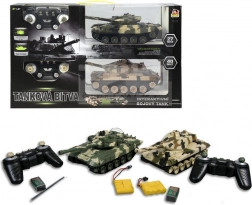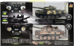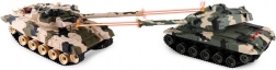Dieses Panzer-Set bietet reichhaltige interaktive Unterhaltung mit realistischen Kampffunktionen. Frequenz 27/40 MHz sorgt für eine zuverlässige Steuerung bis zu einer Entfernung von 15 m. Jeder Panzer ist mit Kanonenläufen und Infrarotdioden zur Trefferegisterung ausgestattet. Die Steuerungen enthalten einen Abzug, der ein echtes Kampferlebnis gewährleistet. Bei einem Treffer erklingt ein Explosionsgeräusch und die Dioden auf dem Panzerturm ziehen „Leben“ ab.
