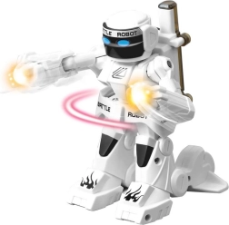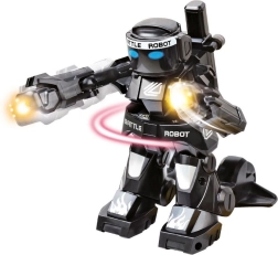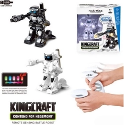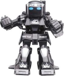 Erleben Sie Spannung und Aufregung im Kampf mit den MaDe Kampfrobotern. Zwei Roboter, jeder mit einer eigenen Fernbedienung, duellieren sich in der Arena direkt bei Ihnen zu Hause. Der Roboter reagiert auf die Bewegungen der Spielsteuerung, was die Dynamik und Realismus erhöht. Eine Treffer-LED informiert über den Gesundheitszustand des Kämpfers, eine Niederlage tritt nach fünf Treffern ein, wenn sich der Roboter automatisch ausschaltet.