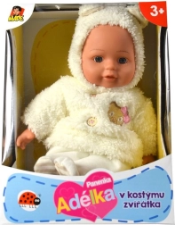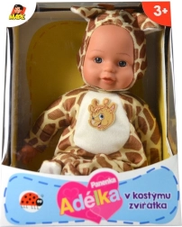 Wunderschöne Puppe in einem Outfit, das an ein Tier erinnert, das Kinder schnell in die Welt der Fantasie versetzt. Mit ihrem lächelnden Gesichtsausdruck ist die Puppe immer positiv gestimmt.