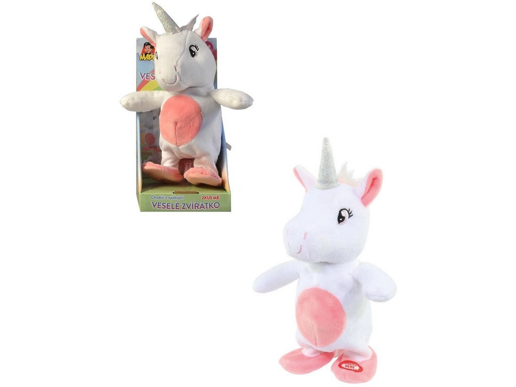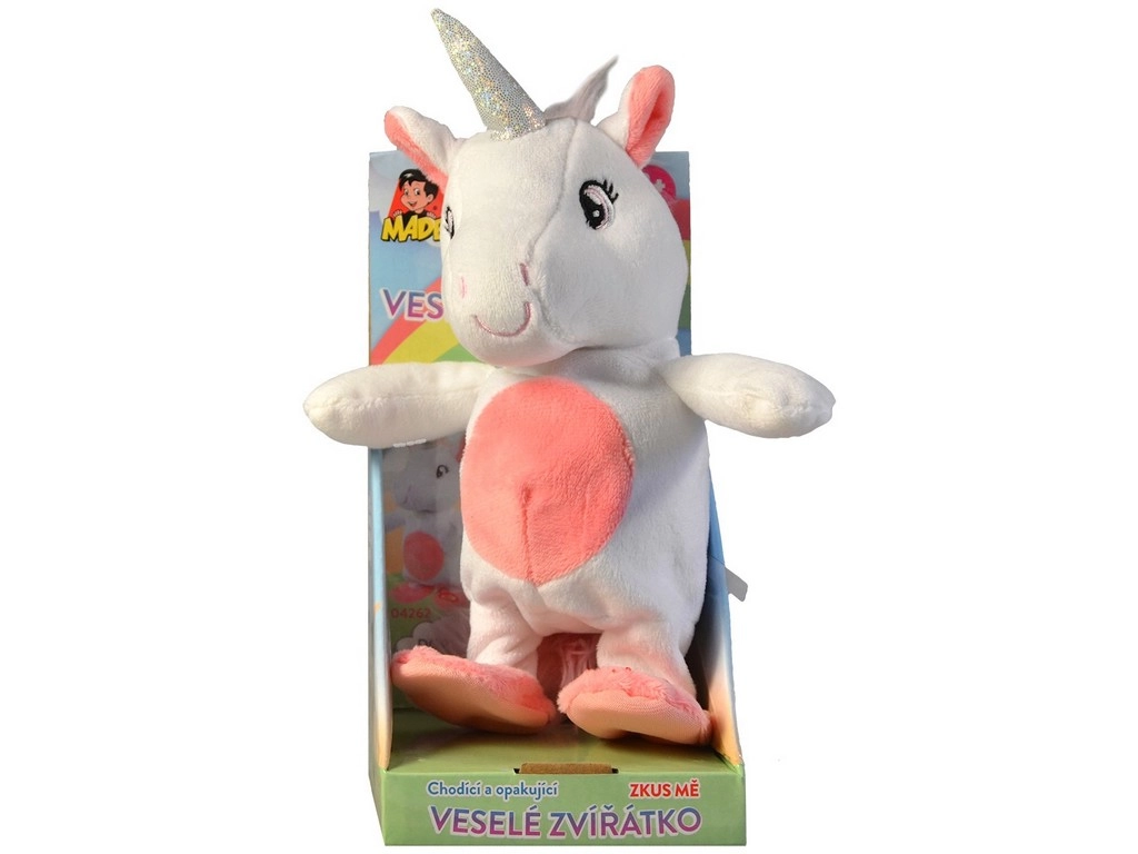 Wir präsentieren Ihnen ein einzigartiges, wiederholendes und gehendes Einhorn! Dieses fröhliche Tierchen wiederholt alles, was es hört und geht zusätzlich, was jede Menge Spaß garantiert.