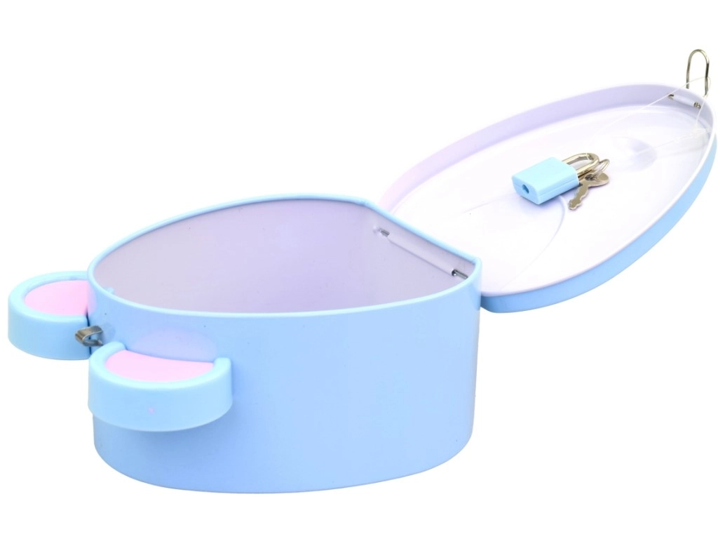 Die Sparbüchse ist aus Plastik und Metall gefertigt, was ihre Widerstandsfähigkeit und Langlebigkeit sicherstellt. Sie ist in drei Farbvarianten erhältlich, was sie für jeden kleinen Schatzsucher geeignet macht.