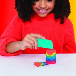 Kombinieren Sie Rot, Gelb und Blau zu wunderschönen Regenbogenmustern. Transparente Walzen und Trichter helfen beim präzisen Schichten und eindrucksvollen Präsentieren der Farben.