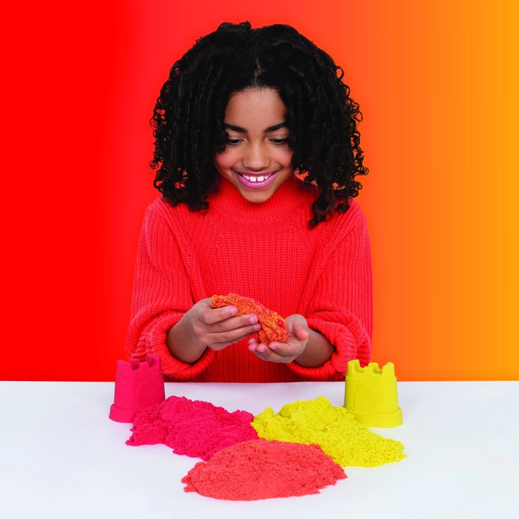 Dieses Set kombiniert den ikonischen Kinetic Sand mit praktischen Werkzeugen zum Schneiden, Mischen und Formen. Gestalten Sie realistische Regenbögen, schichten Sie Farben und bauen Sie bunte Burgen – der Sand hält die Form, klebt nicht und fühlt sich angenehm an.